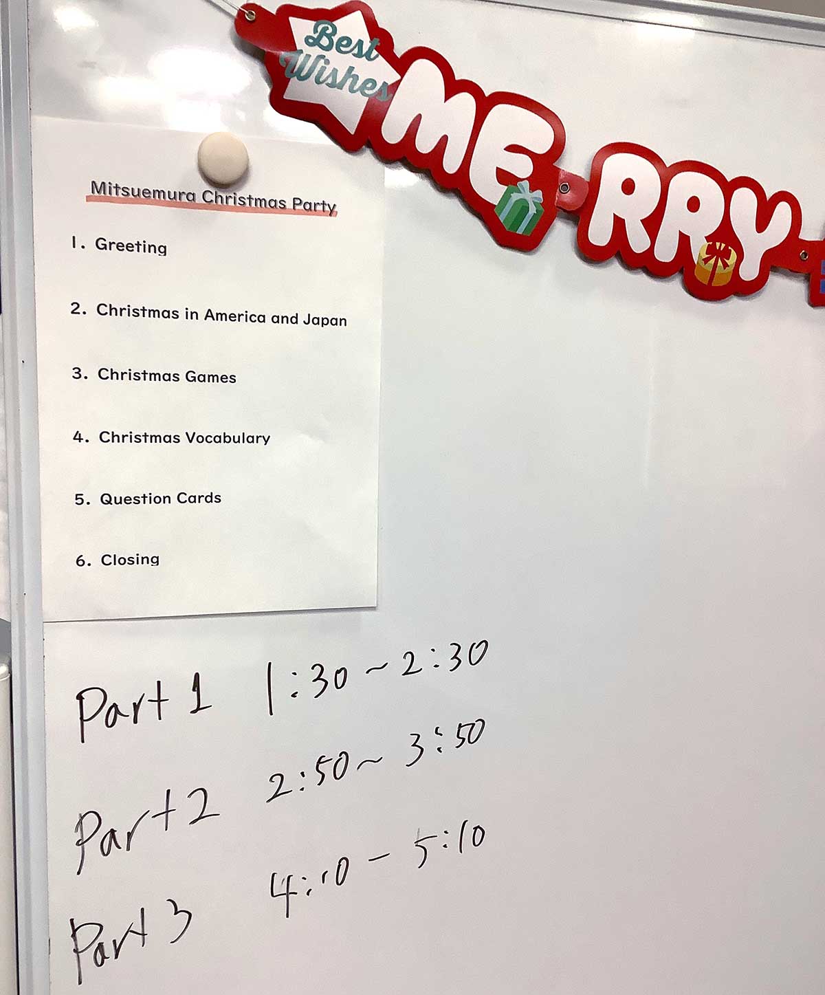 After the fun of seeing the building, it was time to get down to business preparing for the parties! We were doing three Christmas parties for the English students of my friend, Mamiko. Our students were comprised of local elementary and junior high students, and I was very excited to meet them.