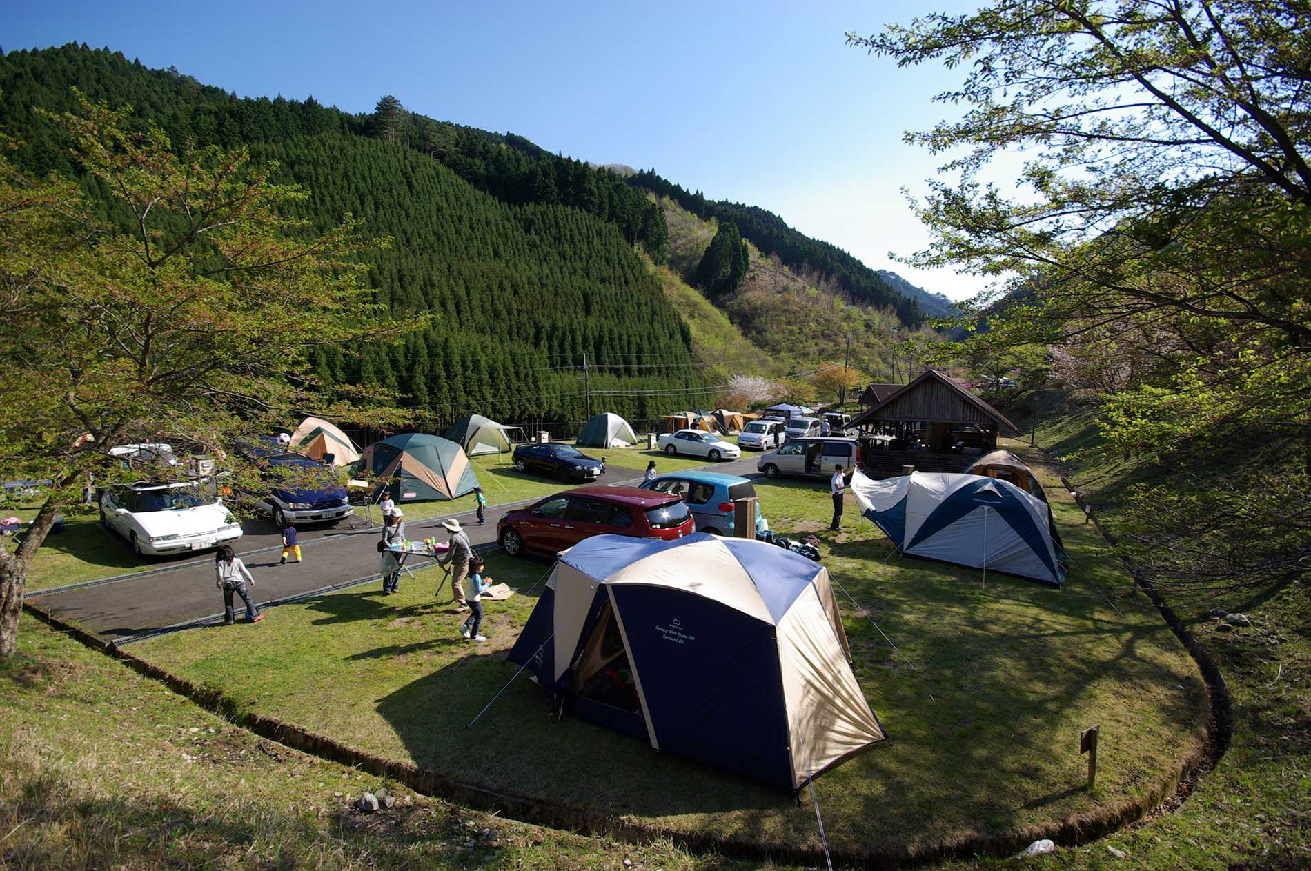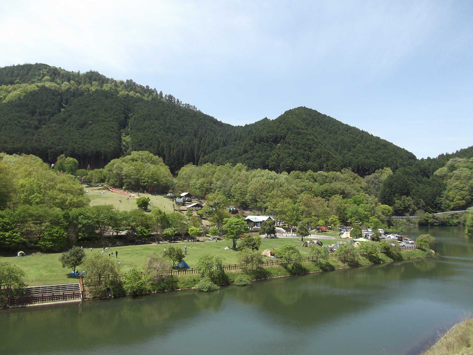 This campground is located within a huge park abundant with nature: Surrounded by mountains, and Uda River runs through the park. You can bring your own tent and set it up at the tent site. Cookhouses, restrooms, and showers are available for campers. This park is a great place to spend a weekend with family and friends, equipped with a barbecue site, grounds for soccer and baseball, and a playground called ‘Dinosaur Land’ which has a 400-meter long obstacle course. This park is home to beautiful cherry blossoms in spring, and also to many species of wild birds. Enjoy everything this park has to offer!