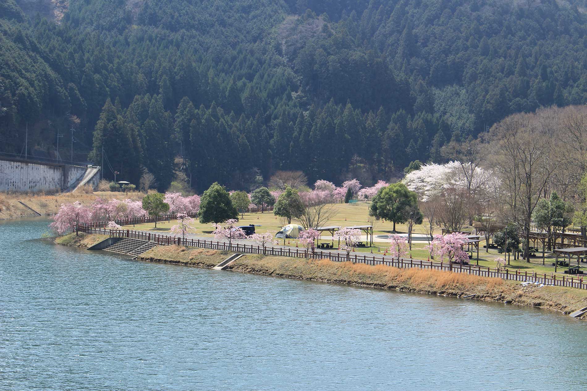 Country Park Oko is a campground where the Stone Age remains have been converted into a park. Because of its excellent access from the Meihan Expressway, many campers come from all over the Kansai and beyond. You can enjoy barbecue on the nearby Nabari River, and in spring, this campground attracts more people to view 200 cherry trees in full bloom.