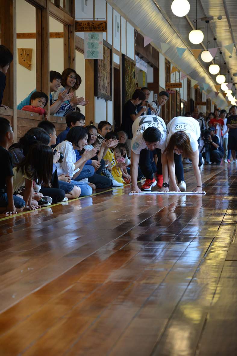 This race is held at an old elementary school in Mitsue Village every autumn. Participants dash from one end of the hallway for the other, sweeping off the 100-meter-long floor with a wiping cloth to win the race. The competition is divided into 7 categories by length, by age, individual, pairs, relay, and so on. It also aims to break the Guinness World Record for floor-wiping. On the day of the event, there are vendors and markets selling delicious food and local produce.