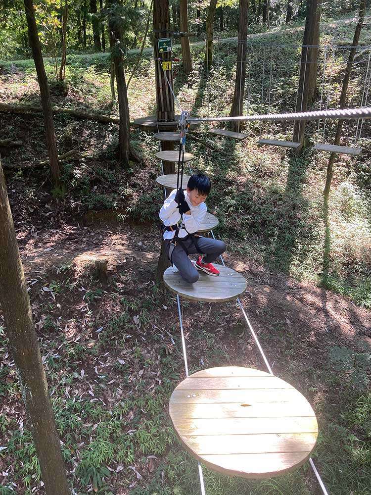 一方その頃アクティビティ班は、勇気を振り絞ってターザンロープに挑戦!! 経験したことない感覚に、父ですらドキドキした様子。息子はもっとドキドキしたことでしょう。しかしいざ自分の番になると、思っているよりすんなり降下!!