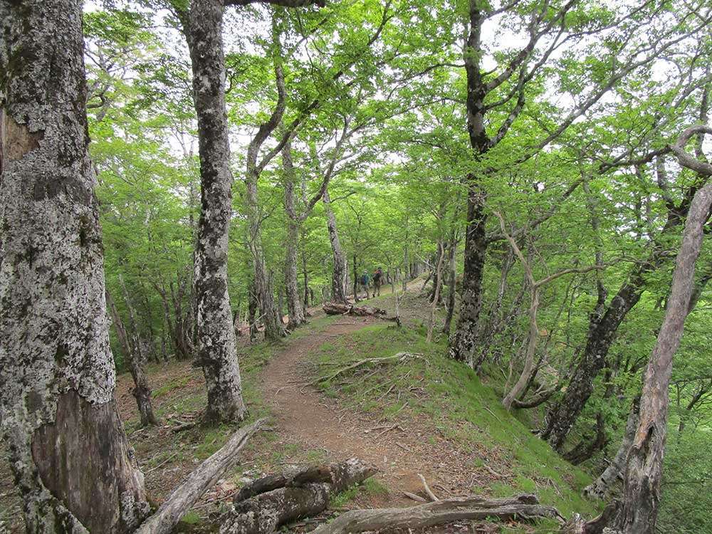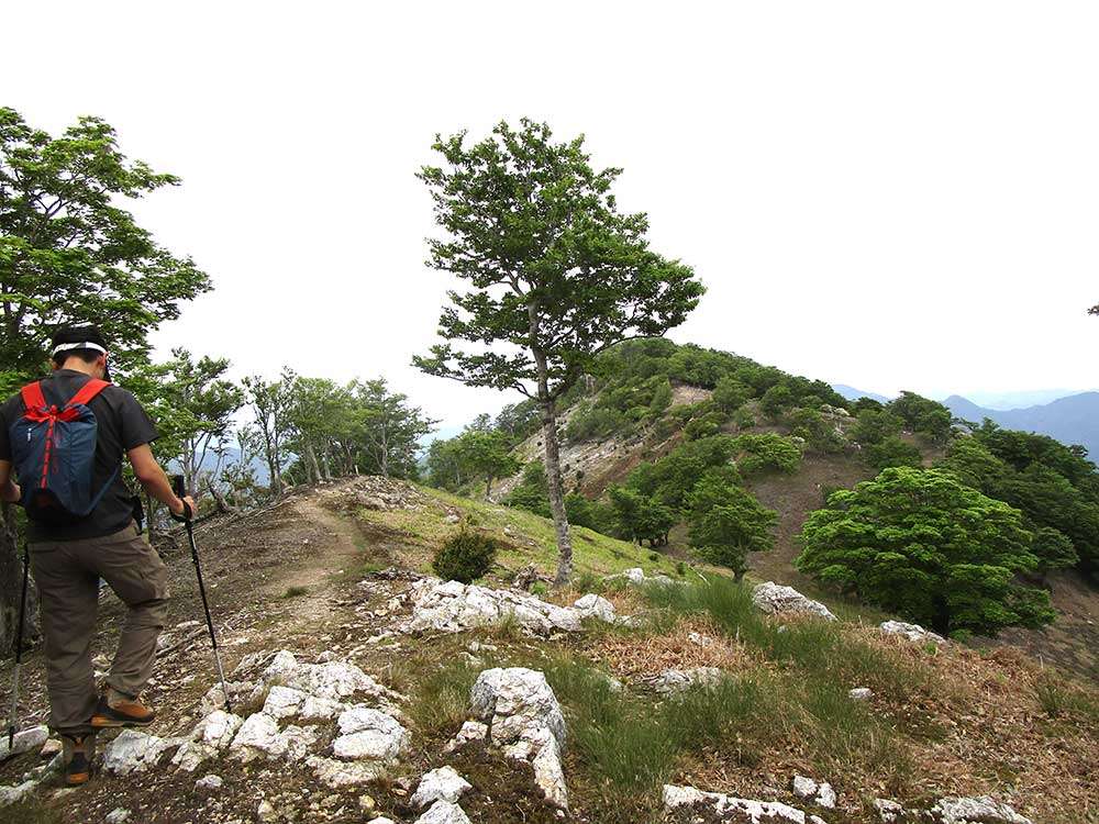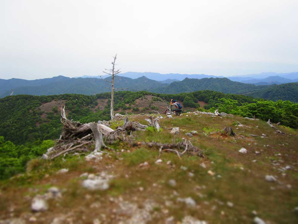 この日は時間があったので、木々もまばらな山道を歩き桧塚へ向かう。そしてその日の野営地、明神平へと引き返した。